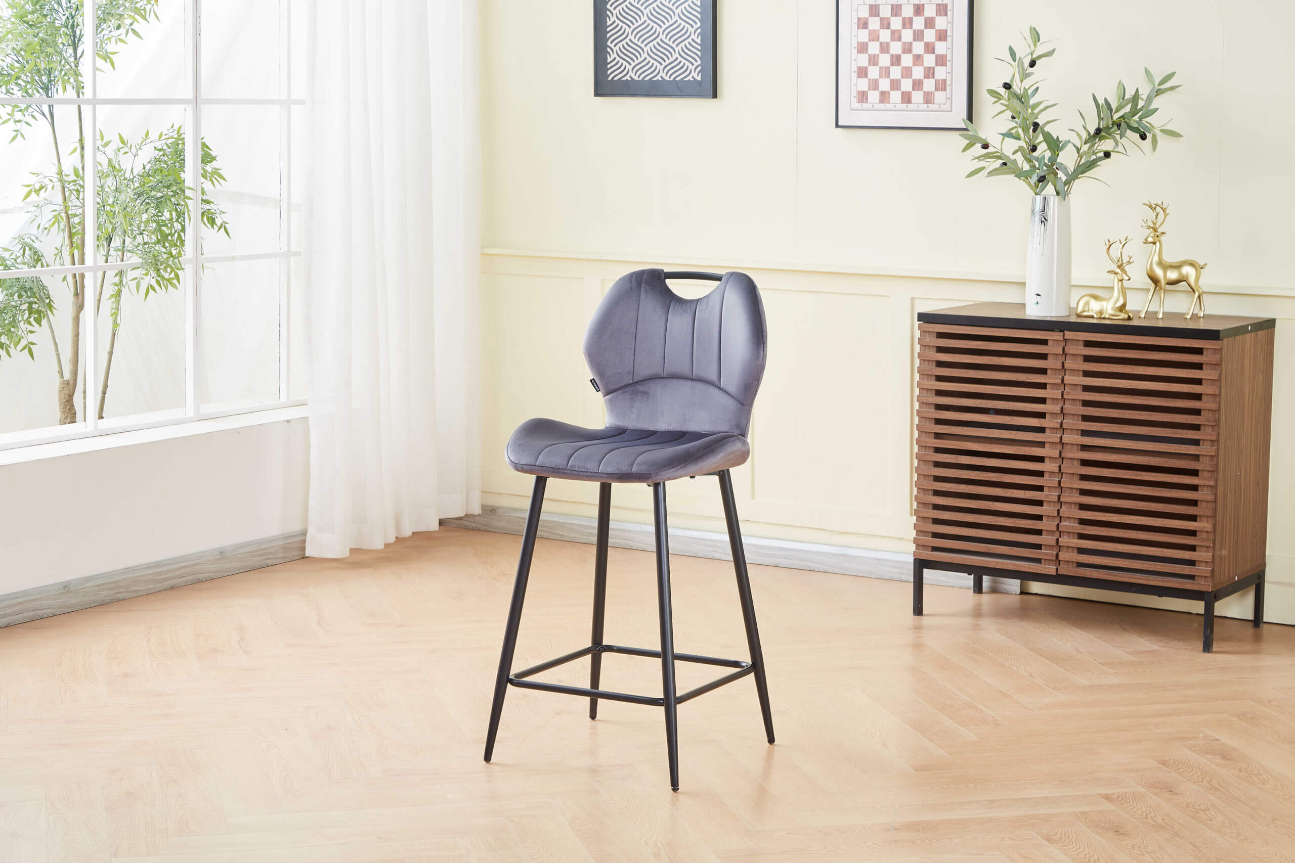 - מושב הכיסא עשוי מריפוד עבה במיוחד וקטיפה אפורה איכותית.